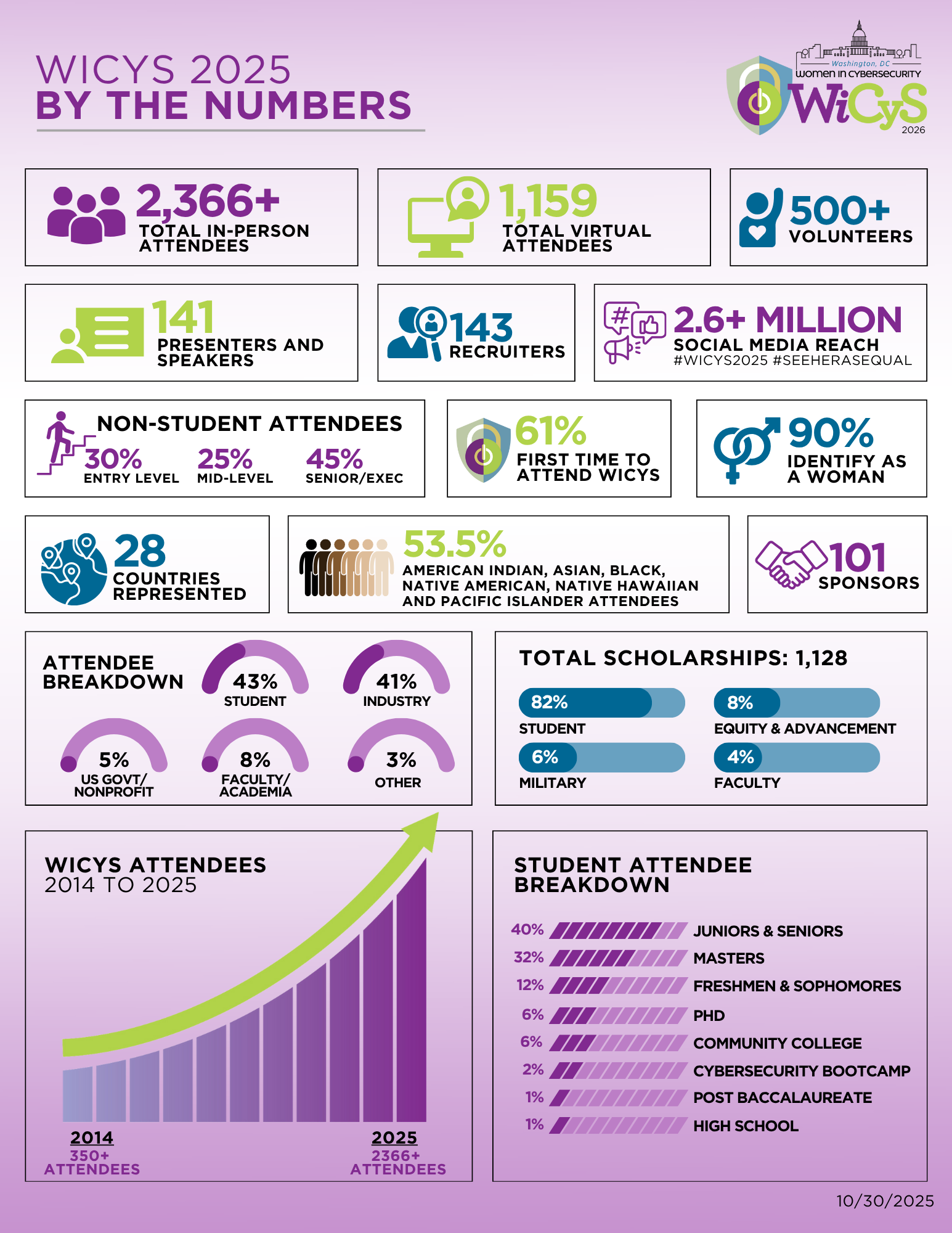 The WiCyS annual in-person and virtual conference are the premier events for women and their allies to recruit, retain and advance women in cybersecurity.