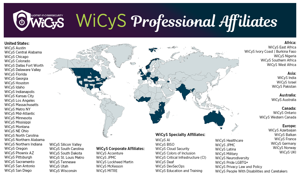 Regional Affiliates are for a state or several adjoining states coordinated with WiCyS to avoid overlap. Example: “WiCyS Mid-Atlantic Affiliate”