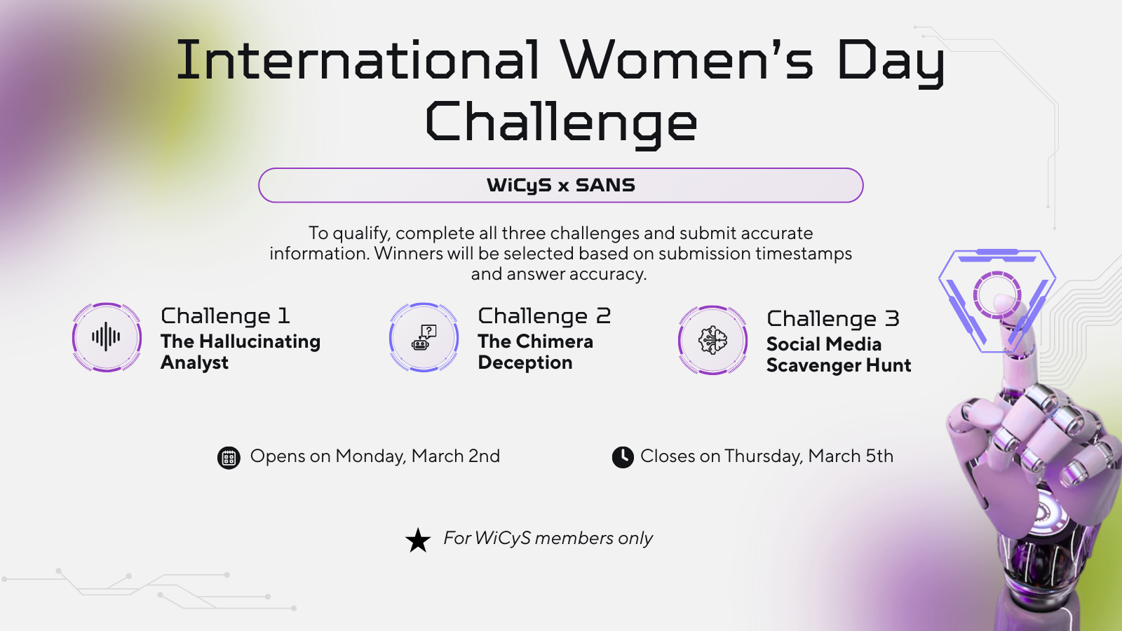 • WiCyS | SANS International Women’s Day Social Media Challenge